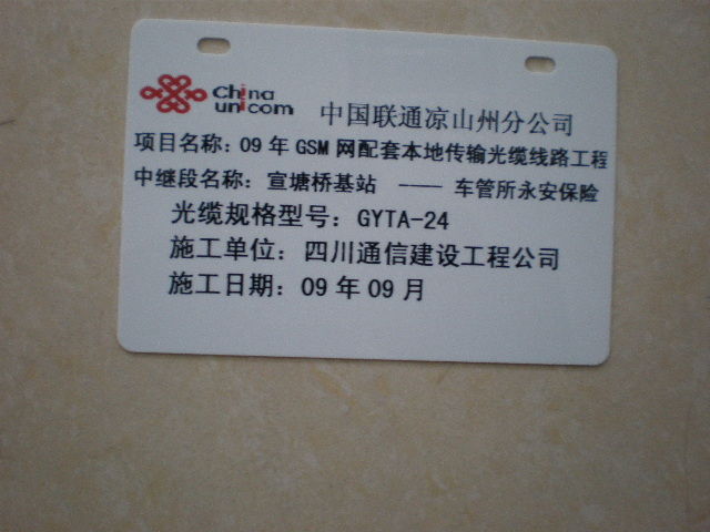 展示1:PVC電纜牌通訊牌覆膜效果: